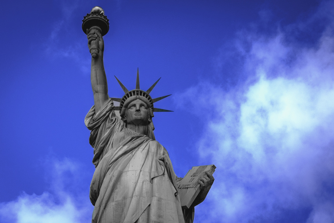Image 8: The Statue of Liberty is an iconic symbol of freedom and welcome. Shown here in muted black and white, with added sharpening and vignetting, this image (42.5 mm, f/5.6, 1/3200 sec, ISO 800) reflects the current struggles for liberty while contrasting them with the bright BLUE of aspiration for the future. Even with clouds hovering over the horizon (Image 7), there remains the promise of a brighter future (Image 1).